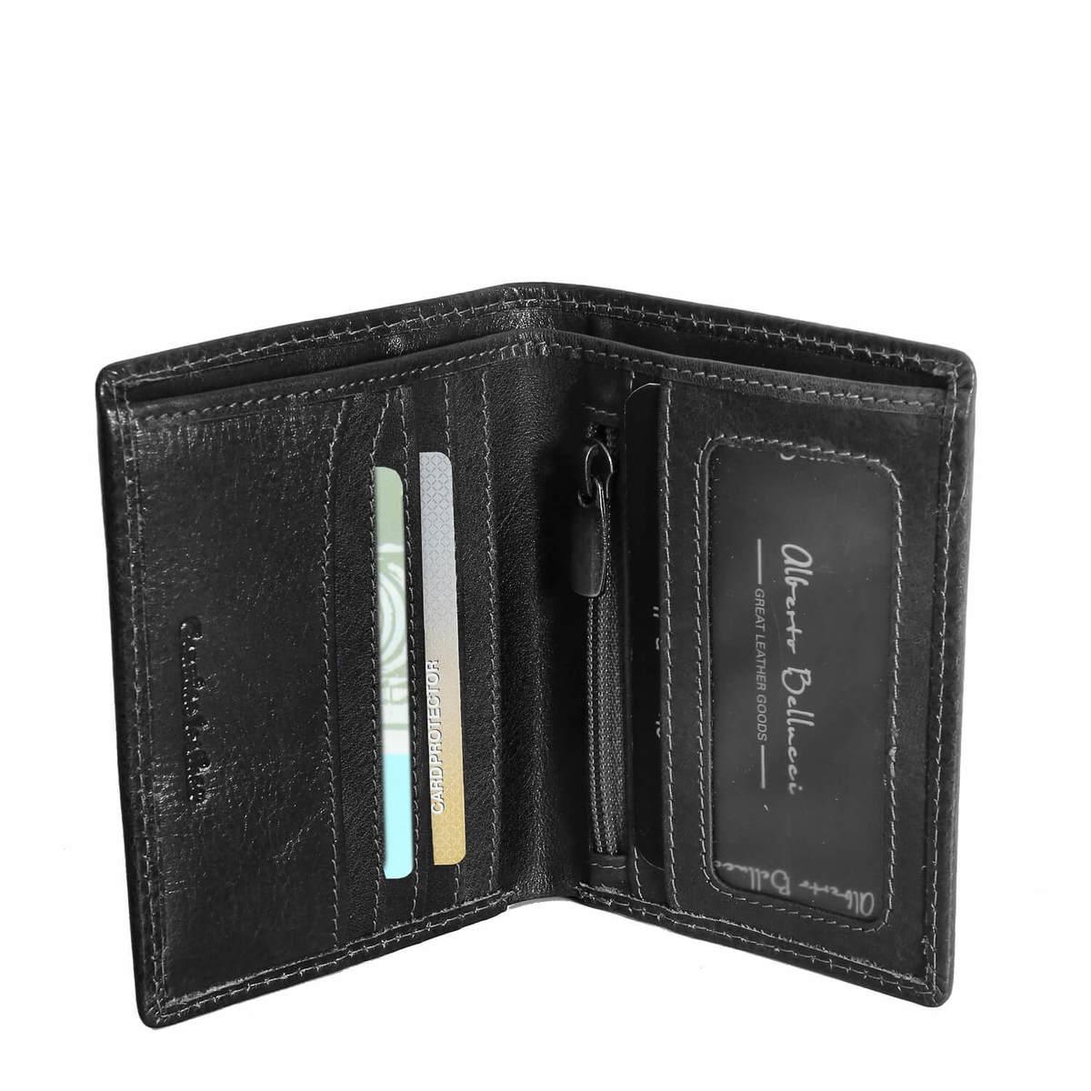 ארנקון בינוני מעור משובח עם 5 תאים לכרטיסים שונים + תא עם חלון שקוף להצגת רישיונות/כרטיסים, 2 כיסים עמוקים למזומן ותא למטבעות עם רוכסן. אחראיות לשנה לארנקי אלברטו בלוצ’י.