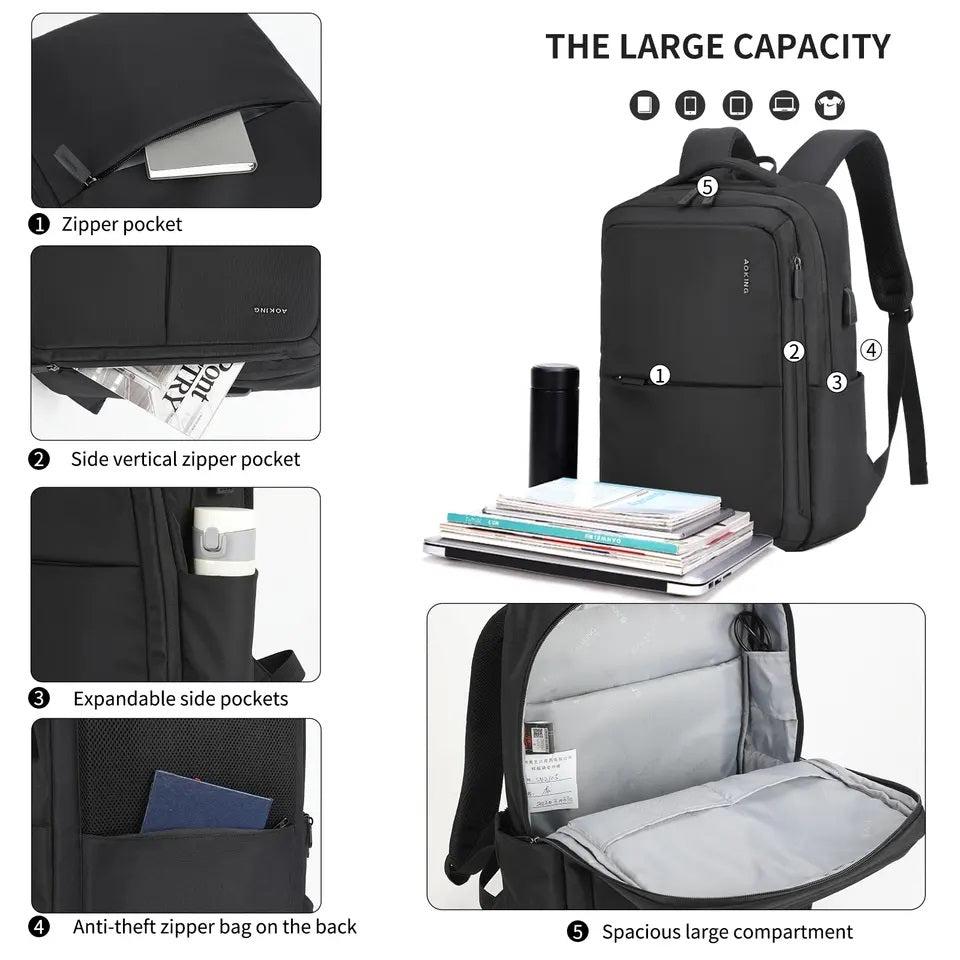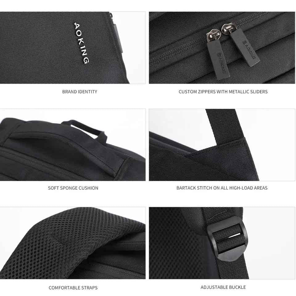 תיק גב מדהים ומלא בסטייל של חברת Aoking. בעל מערכת גב מרופדת, תא יעודי למחשב עד 15.6" ומלא תאים פונקציונליים.