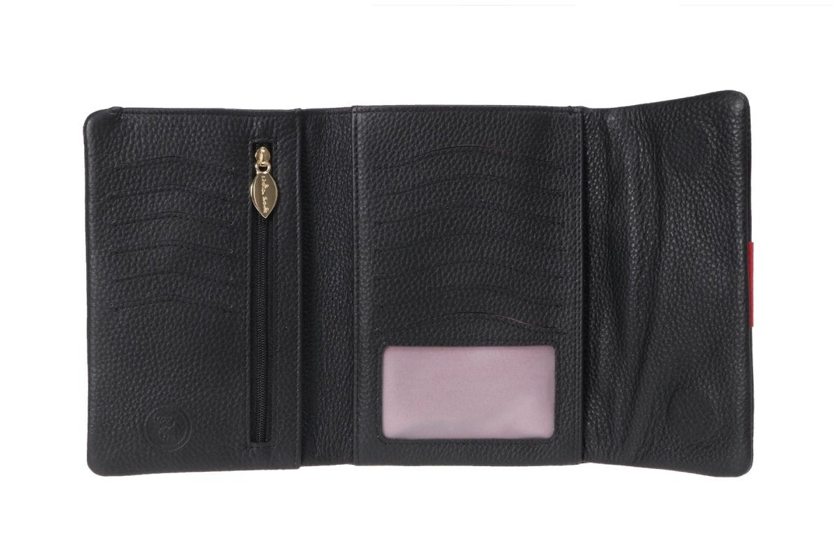 ארנק מאובזר ב13 חוצצים לכרטיסי אשראי, וחלון שקוף לתעודה. עשוי עור נפה מובחר בפנים ונסגר באמצעות קלפה ומגנטים.