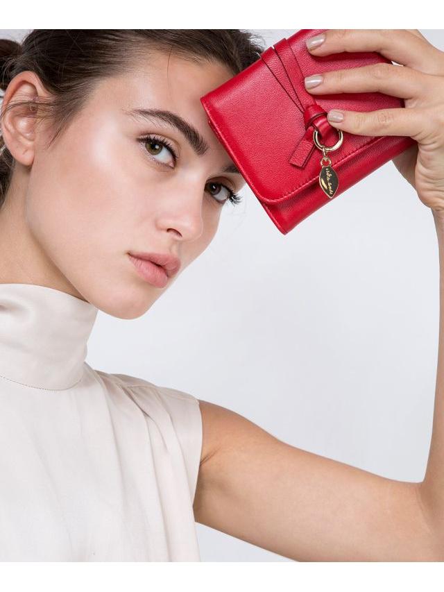 ארנק מעור נאפה של המעצבת נטע שדה. ארנק קטן וקומפקטי עם סגירת מגנט ורוכסן חיצוני למטבעות. מכיל מקום ל - 8 כרטיסים ותא שקוף לתעודה.