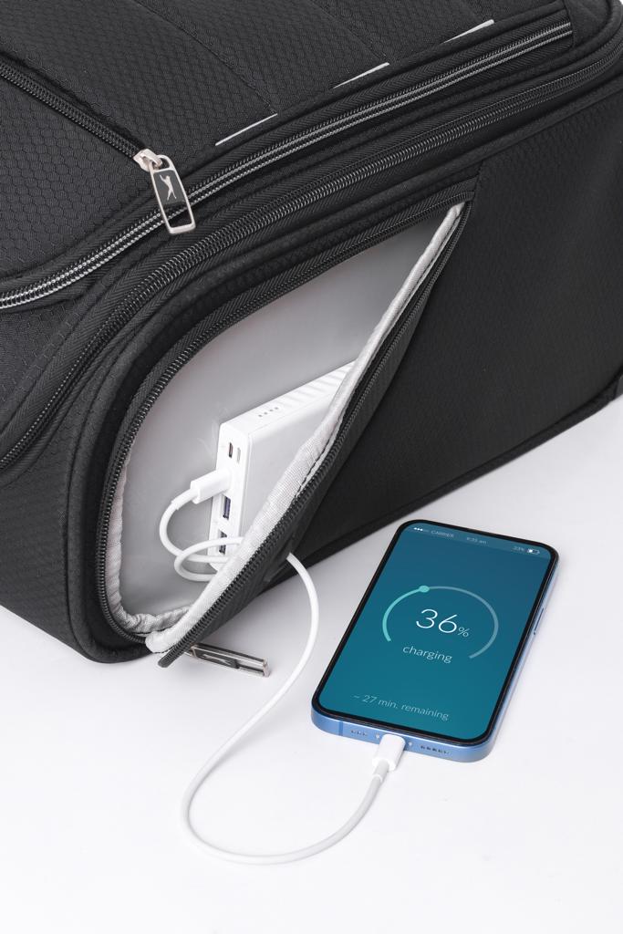 יציאת USB בצד המזוודה המאפשרת טעינה של מכשירים סלולריים באמצעות חיבור סוללה