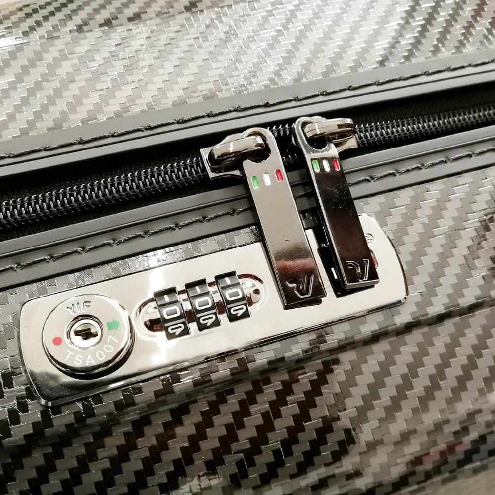 רוכסן היקפי ובתוכו 2 מקומות אחסון לבגדים, הלבשה תחתונה ונעליים, עם סגירה של רצועת בטיחות ורוכסן היקפי נוסף מכל צד.