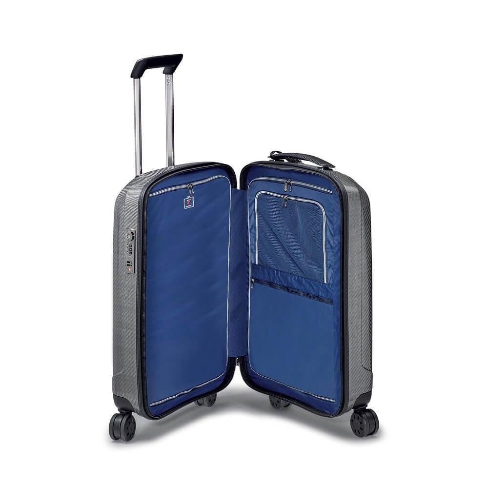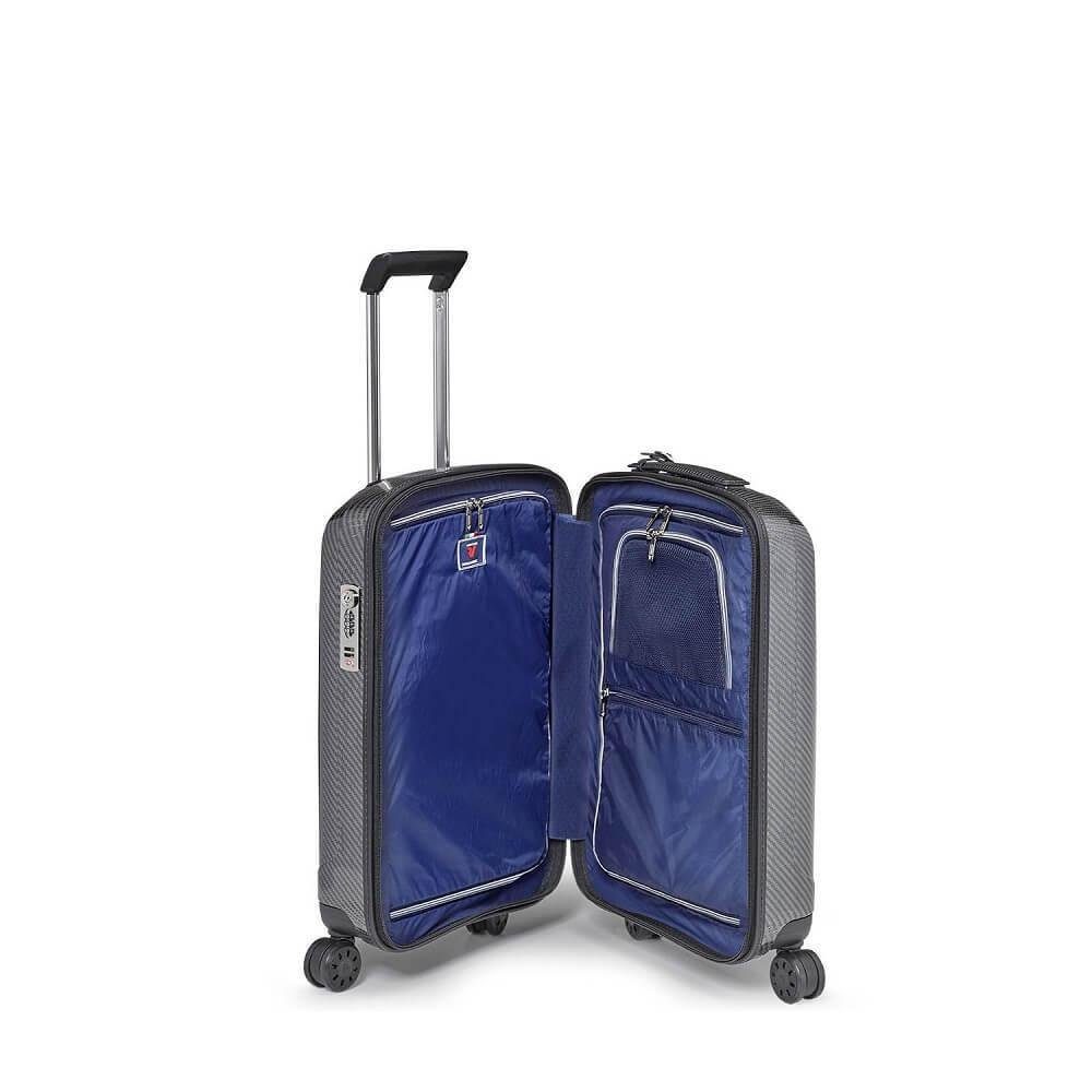 טרולי איכותי מבית RONCATO מתאים למי שמחפש טרולי עם תאי אחסון מרובים ומראה קלאסי. סמל מותג יוקרתי מנעול רוכסנים לבטיחות המזוודה