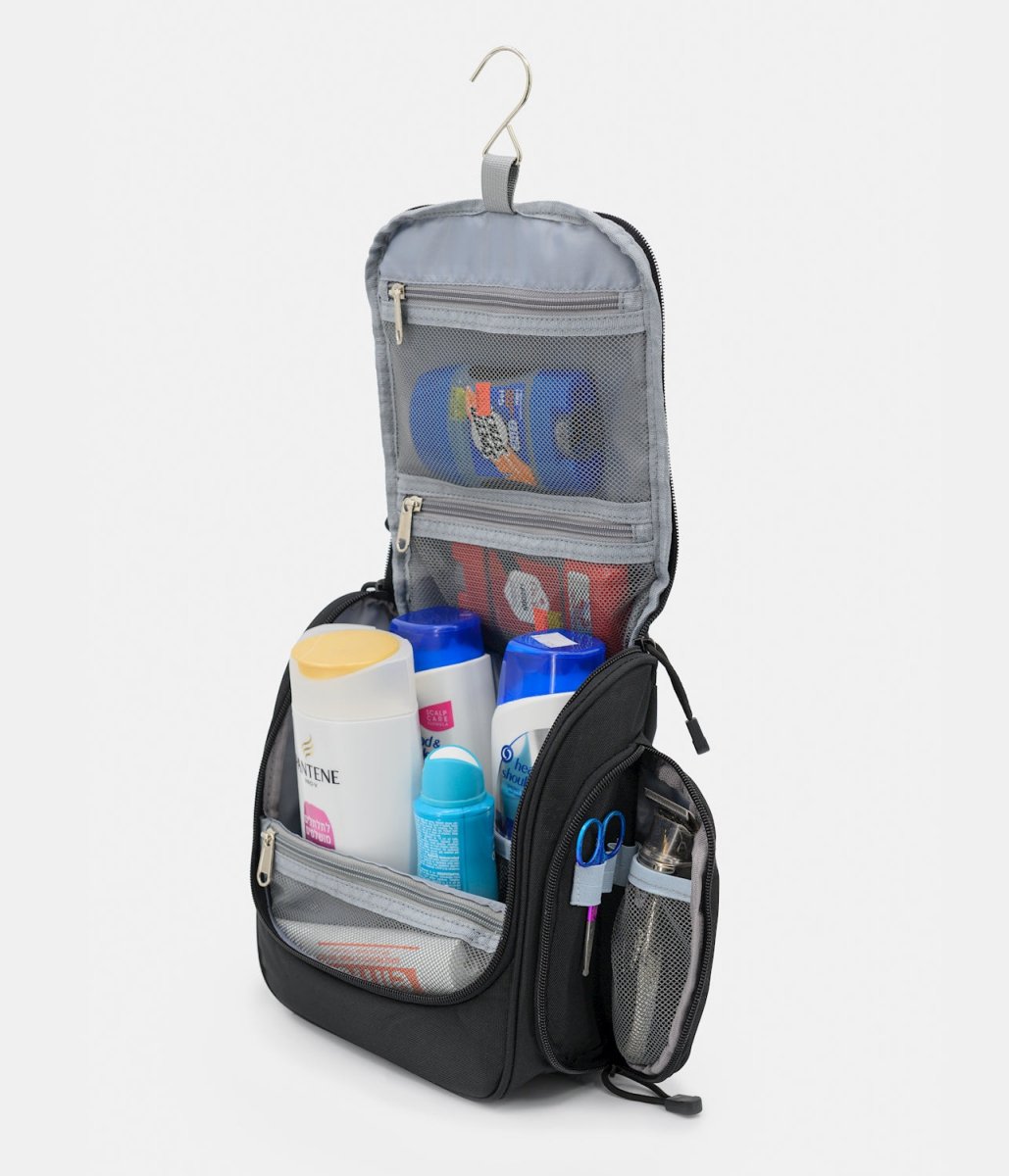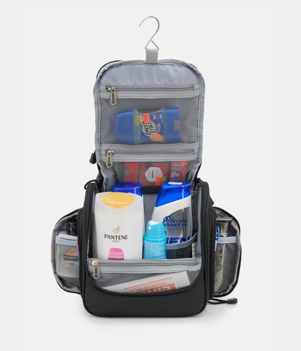 תאים צידיים בסגירת רוכסן עם לולאות אחסנה למברשות שיניים/סכיני גילוח וכו'
