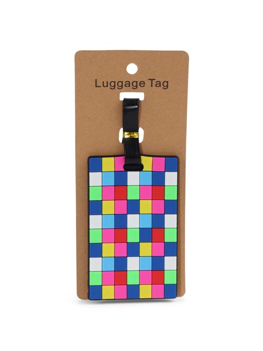 תג שם איכותי חזק ועמיד, עם אבזם לחיבור לידית המזוודה וחלונית שקופה להצגת הפרטים