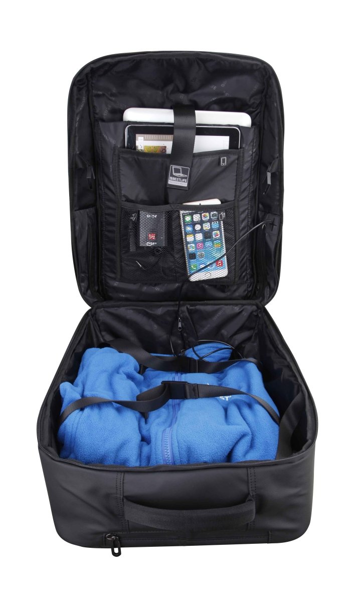 תיק גב עגלה עם תאים מרופדים לטאבלטים ולמחשבים ניידים עד 15.6 אינץ'.