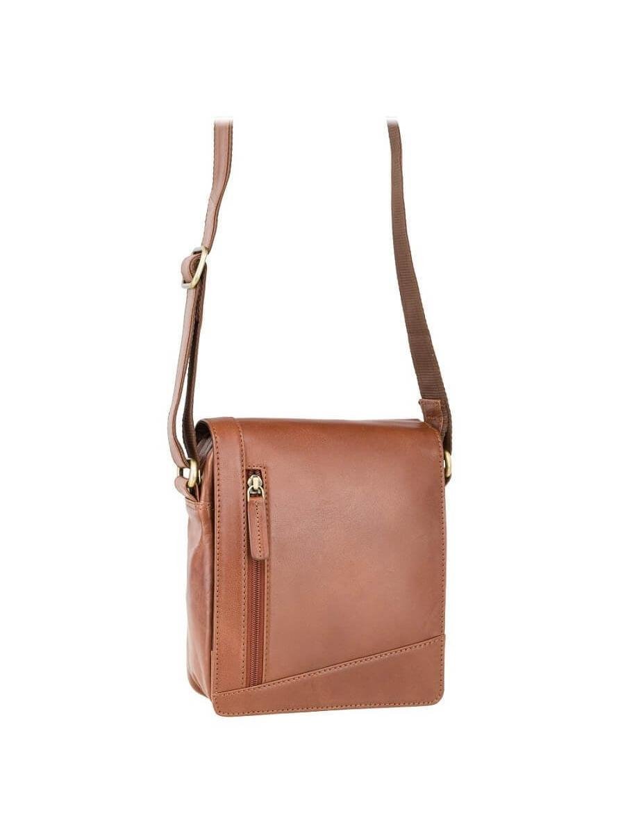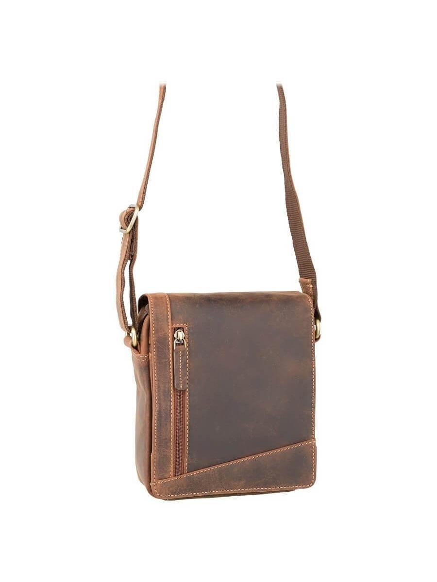 תיק צד מעור משומן בצבע חום, מבית המותג VISCONTI, בעיצוב וייצור בעבודת יד מחומרי גלם שנבחרו בקפידה. התיק מעוצב עם תא קדמי אנכי ואחורי עם רוכסן תא ראשי גדול עם רוכסן וקלפה לסגירה עם כפתור. רצועת יד להתאמה לנוחות שלך.
