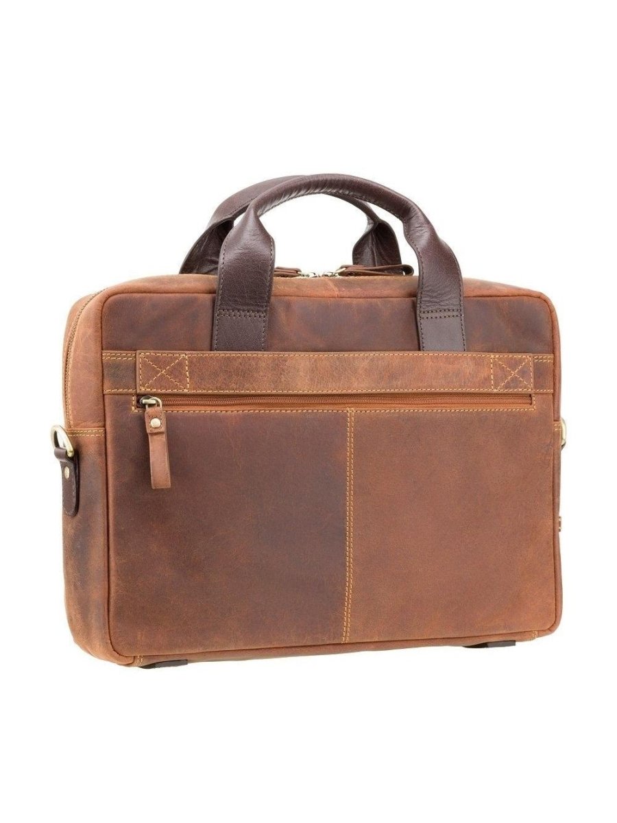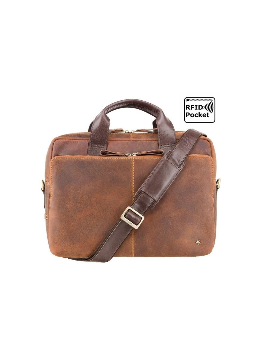 תיק עסקים מבית המותג VISCONTI, בצבע חום בהיר, נוצר באמצעות עור רך תוך מתן דגש על נוחות מרבית לשימוש יום יומי ועיצוב אלגנטי עם פנים תיק בצבע כחול אשר מוסיף ייחודיות.