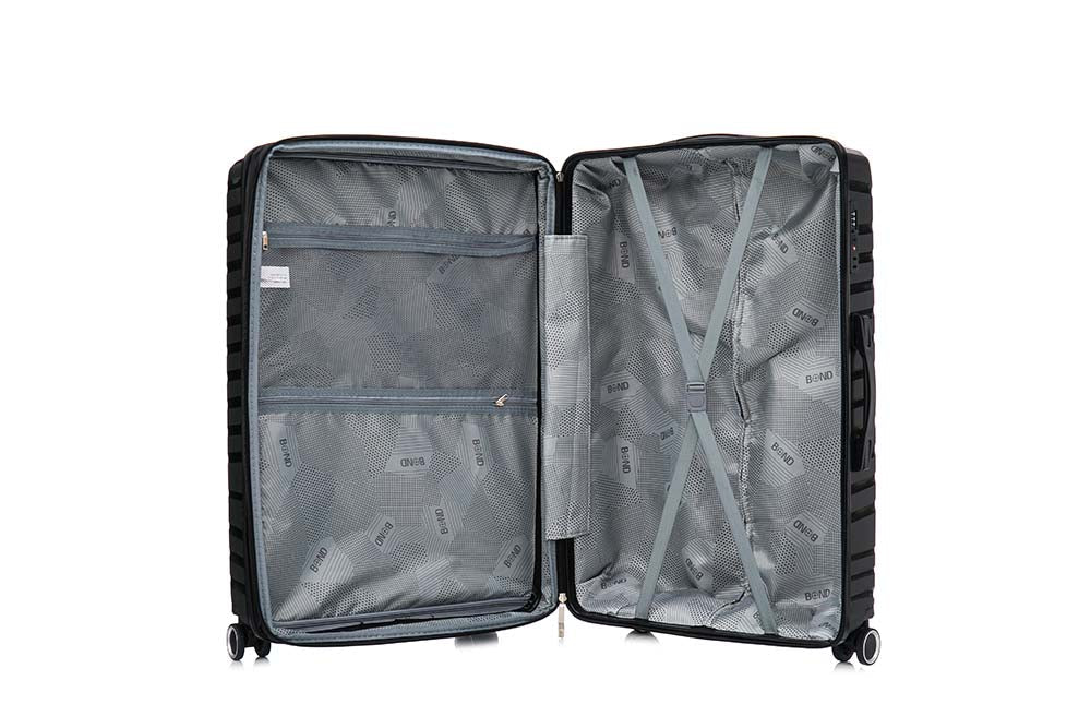 מזוודה קשיחה וחזקה עשויה מחומרים עמידים במיוחד מסוג Polypropylene (PP) של המותג BOND. מזוודה חזקה יפה ואיכותית בעלת נפח גדול. 4 גלגלים כפולים איכותיים מסיליקון. בעלת רוכסן הרחבה. רוכסנים מספר 10 האיכותיים ביותר, ידית טרול אלומיניום מתכווננת וידיות אחיזה, מנעול TSA. המזוודה מחולקת ל-2 חלקים שווים, צד אחד עם מחיצת רוכסן, ועליה תא רוכסן וצד שני באמצעות רצועות אחיזה.