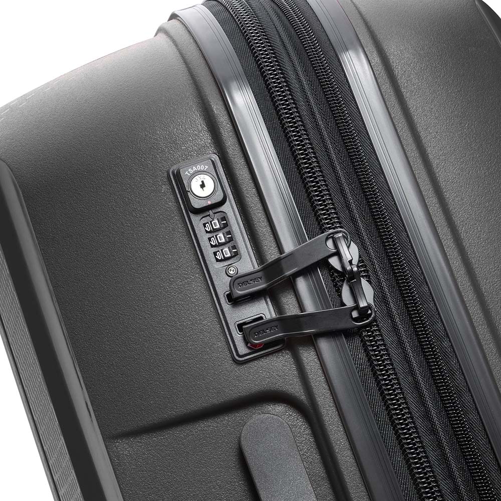 מזוודה קשיחה גדולה של חברת Delsey הצרפתית, חזקה , עשויה 100% פוליפרופילן רוכסן כפול להגנה מירבית נגד גניבות, המזוודה מתרחבת ובעלת מנעול TSA