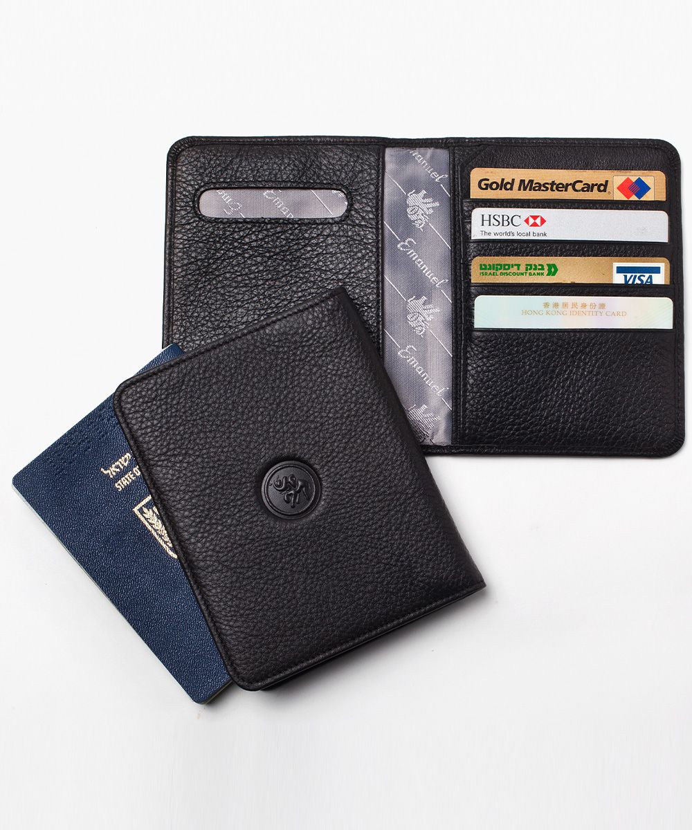 כיסוי עור מהודר לדרכון , אפשרות להכניס 2 דרכונים סגורים, תפור בקפידה, מתקפל ושומר על צורה שטוחה