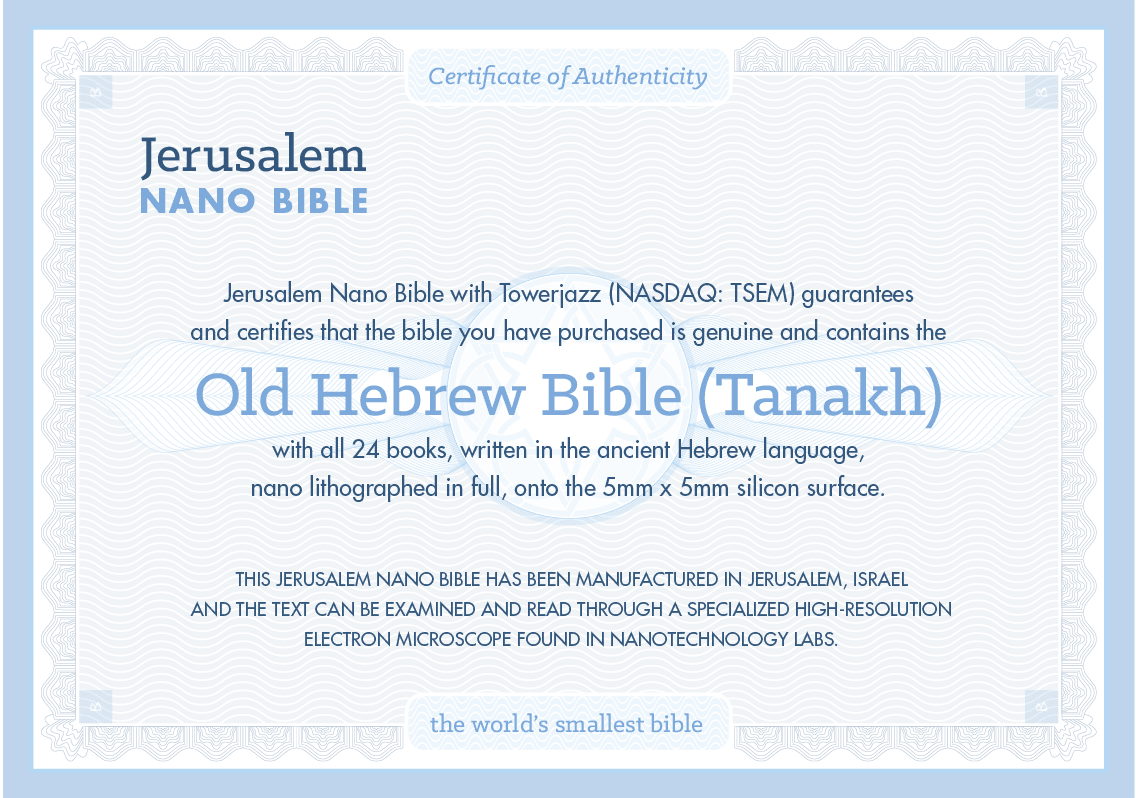 הננו תנ"ך של ג'רוזלם ננו תנ"ך הוא היחיד שמיוצר בישראל והראשון בעולם.